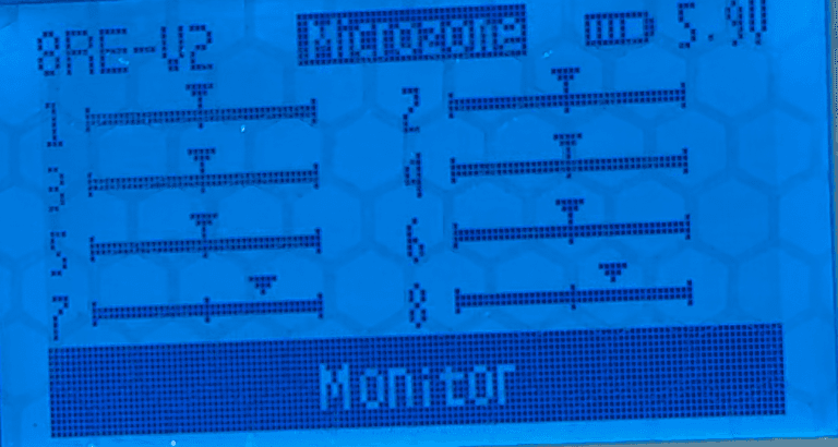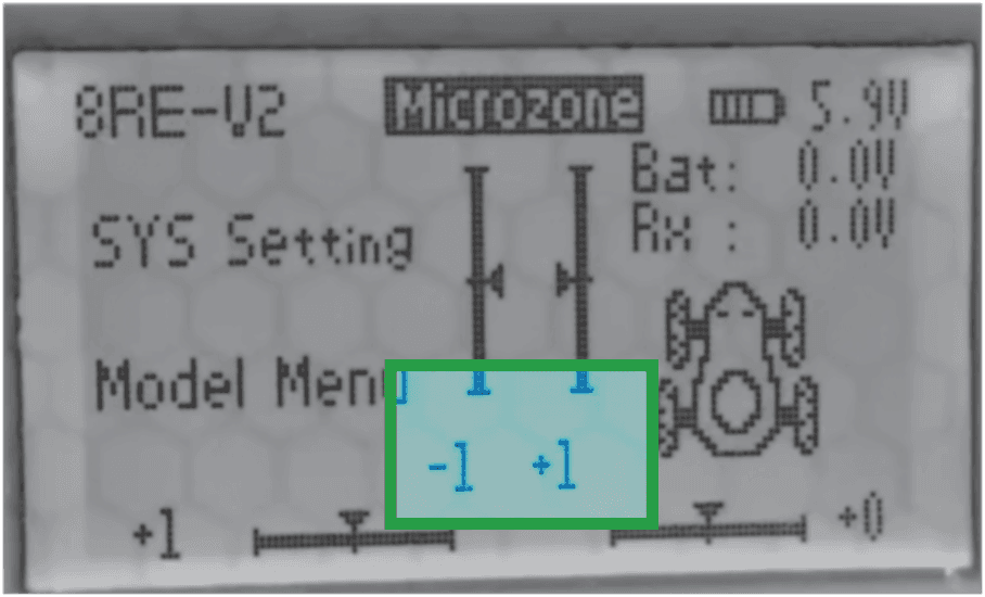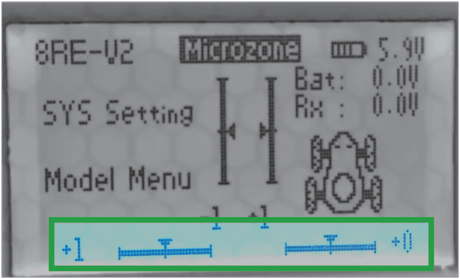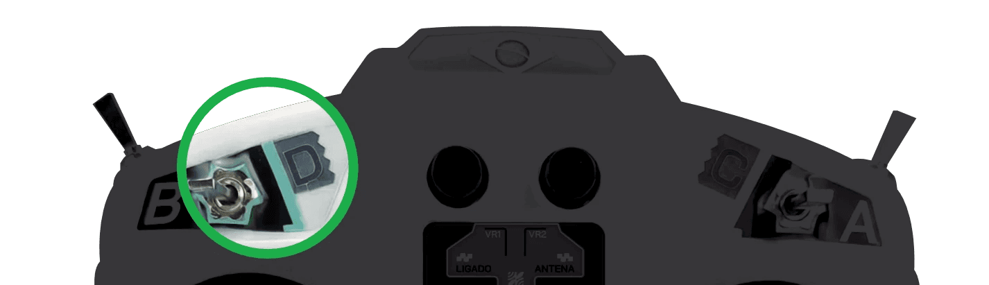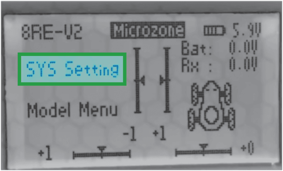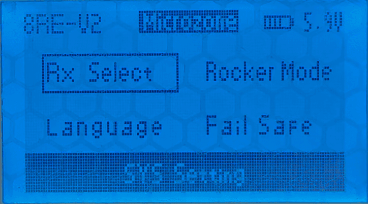 RX (Recepção) — ajusta como o controle recebe o sinal da máquina. Tem várias opções. A configuração de fábrica é 8R e funciona bem na maioria das situações.